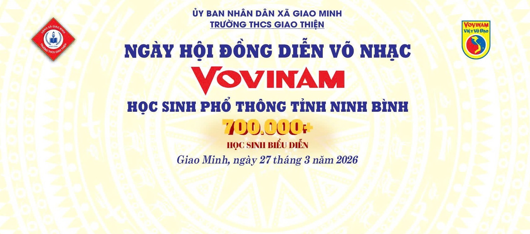 Sáng ngày 27/3, trong không khí sôi nổi và đầy tự hào, buổi đồng diễn võ nhạc Vovinam của tỉnh Ninh Bình đã diễn ra thành công tốt đẹp.