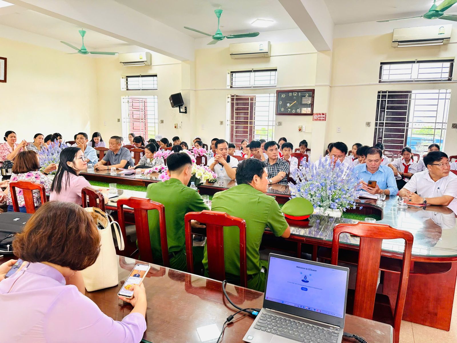 Cuối phần tuyên truyền, đồng chí kêu gọi các em hãy sống chan hòa, tích cực, biết chia sẻ, giúp đỡ nhau trong học tập, cùng nhau xây dựng môi trường học đường an toàn, thân thiện, không bạo lực, không tệ nạn.